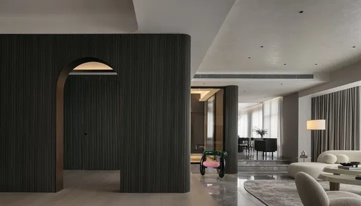 They were equally mindful of letting in as much daylight as possible — something the unit was desperately in need of. The result is a space that is warm, organic, and welcoming, with soft textures, curved forms and light, neutral tones of beige and taupe.