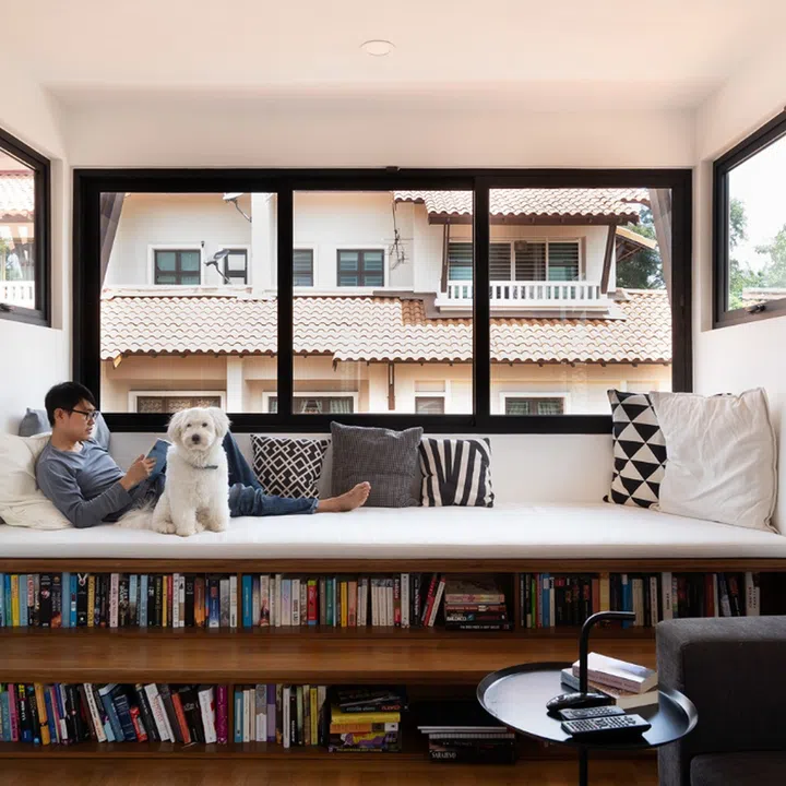 Having a carved out space provides a neat enclave like experience that is ever so slightly segregated from the main living space. You can curate an all-in-one set-up by building a bookshelf with a stair-like configuration for that library look. Do also look to include a full-sized sofa cushion along with sheer curtains to soften the harsh midday light for a truly immersive experience.