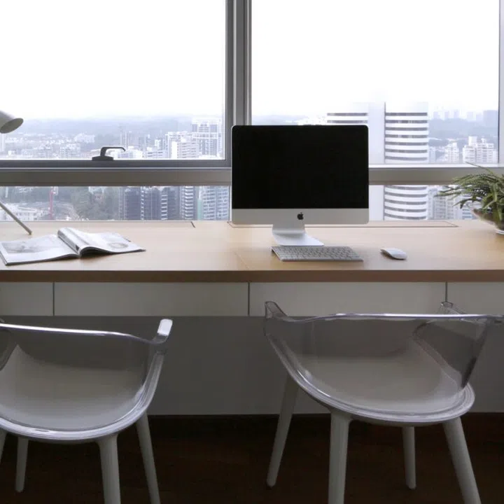 With Singapore’s limited land space, high floor apartments that overlook the city’s skyline are becoming a norm. In view of this (no pun intended), what better way than to maximise vantages of the outdoors and set up a conducive study filled with natural light.