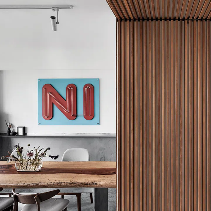 Modern panelling solutions can be rather compact and do not take up that much additional floor space. Additionally, certain designs act as neat accents for space, providing much-needed contrast for some homes. Louvred panels help to conceal their own door openings and are thus a great choice for a truly seamless look. Consider extending this design language by having the louvres wrap around the ceiling above as well.