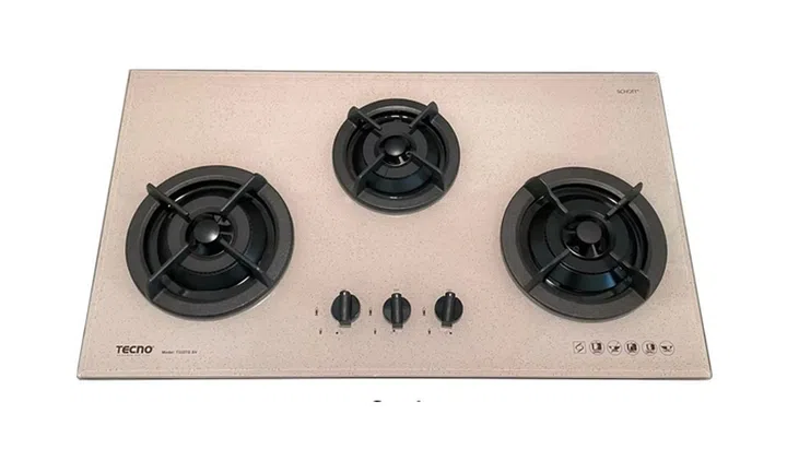 Looking for an interesting coloured glass cooker hob aside from the standard black? For this series of 3-burner Tecno cooker hobs, there are up to 6 colours of tempered glass options to choose from, where the unique sand colour option with speckled finishing stands out the most.
