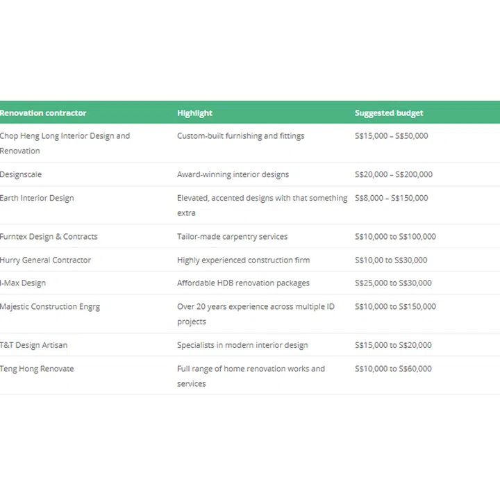 We’ve gone one step further. Here’s a list of nine highly experienced HDB-approved renovation contractors to meet your home improvement needs – whether you have a small, medium or large budget.
