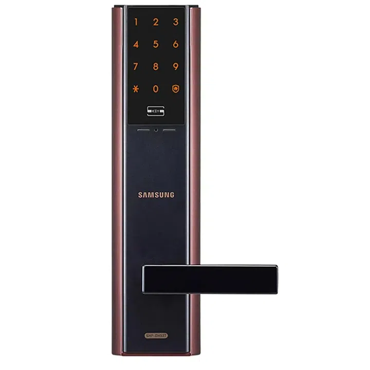 An advanced and stylish digital door lock with orange backlit LED touchpad, the Samsung SHP-DH537 is a winner of the iF Design Award and Red Dot Design Award.