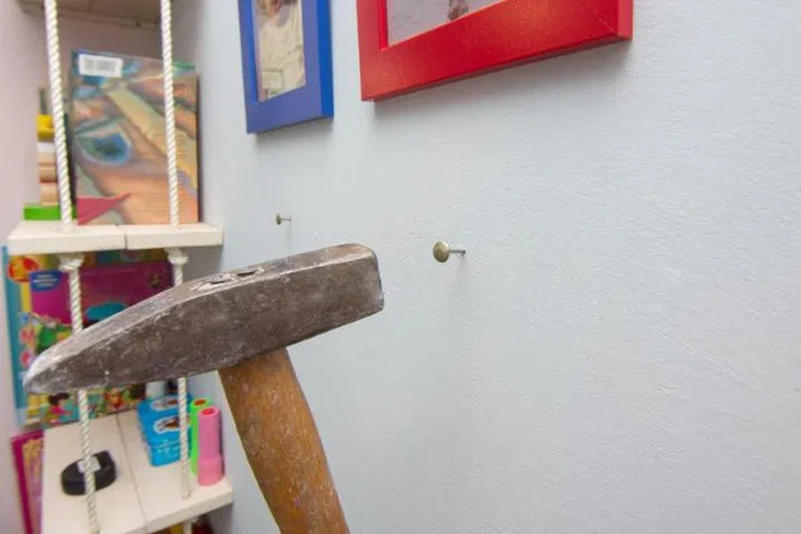 Before you drive a nail into the wall, place a piece of tape over the spot, and you'll avoid cracking the plaster on the wall.