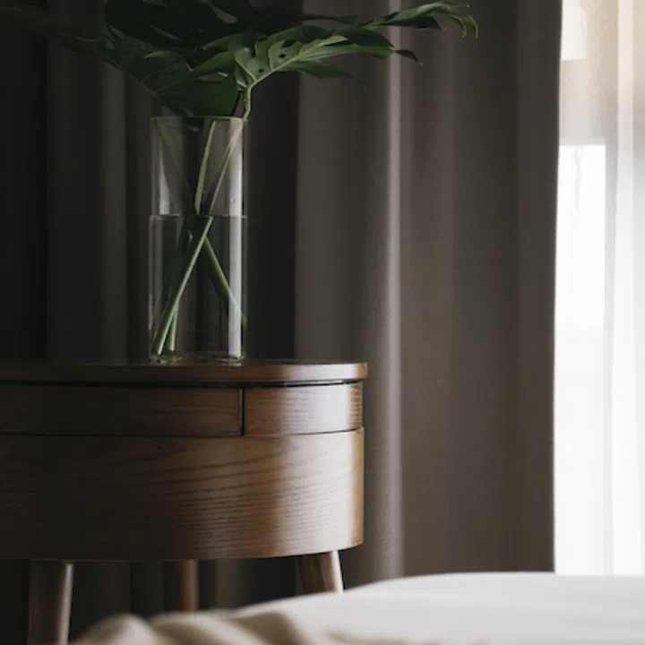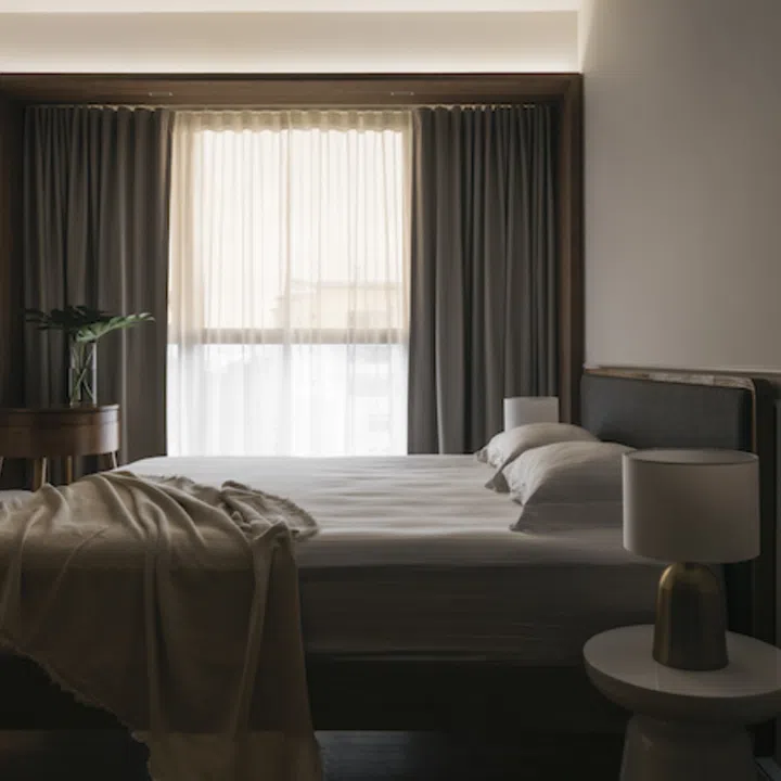 “The biggest challenge was working with the half tinted film on the existing windows. With an intense half-warm tint casting into the bedroom throughout the day, the spatial experience and mood for the user seems disoriented at times. The solution was to have day curtains and louvered blinds with sensitively selected finishes that can help soften this effect, creating a more soothing atmosphere for both the space and the user. A darker tone laminate was also selected to find balance with and complement the hue of the tinted cast.” he explains.
