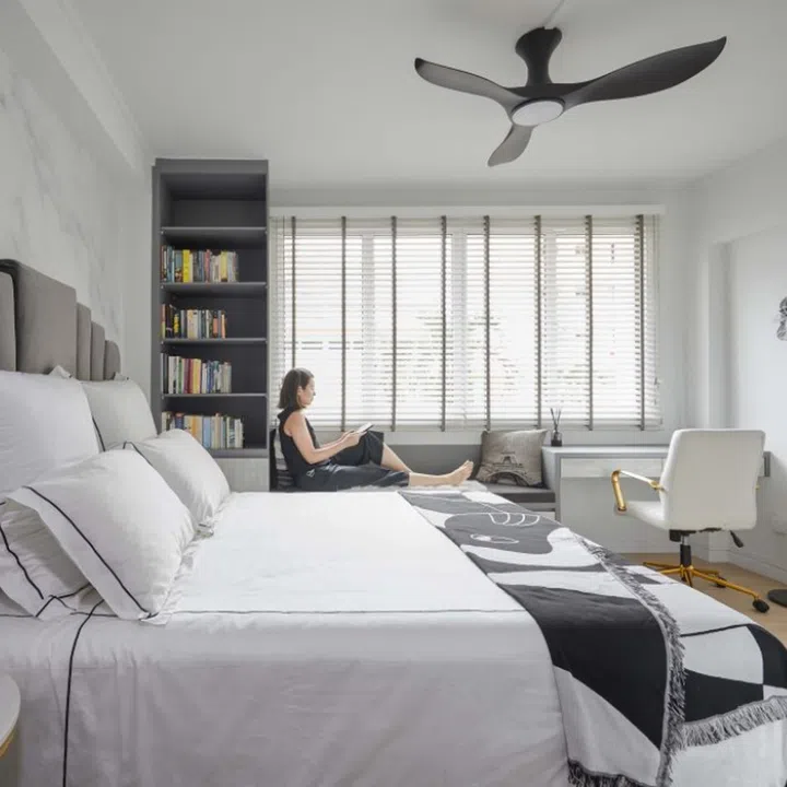 In their previous home, a bay window overlooking an open space was their daughter’s favourite resting area. Reminiscent of her childhood, this bay window was designed in memory of that treasured space, with the intent of using it for both relaxation and work.