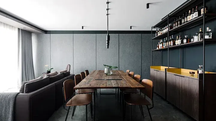 A Dark Industrial-Style 5-Room BTO With A Striking Home Whisky Bar