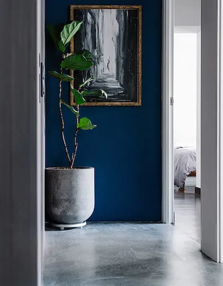 This painting by a Vietnamese street artist was a gift from the couple’s friend, and takes pride of place against a blue wall in the hallway leading to the master bedroom.