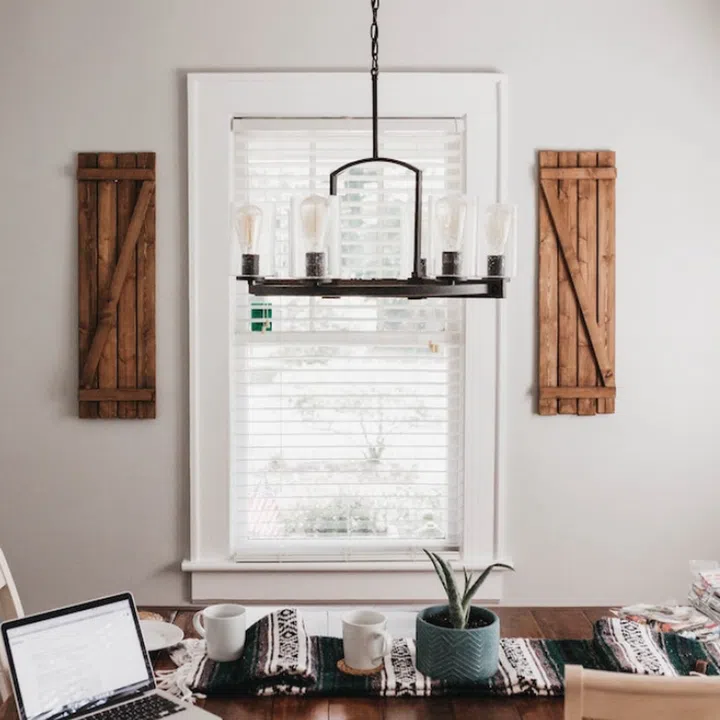 Blinds offer a minimalist, modern aesthetic, and come in different materials such as fabric, metal, or wood. They also offer more light adjustability, but may let in light from the sides even when fully closed.