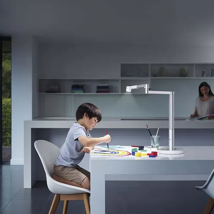 To help your kids maintain healthy eyesight, it’s crucial to ensure that reading and study areas are equipped with good lighting. Designed to reduce eye strain and improve visual performance, Dyson’s Solarcycle Morph is a unique task lamp that uses daylight tracking technology to provide indirect, feature, ambient or task lighting.