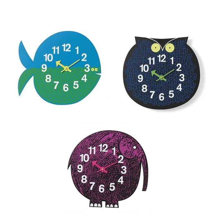 Make learning how to read time fun for toddlers with Vitra’s Zoo Timers wall clock. Designed by George Nelson in 1965, these delightful clocks come in the form of an owl, elephant, and fish.