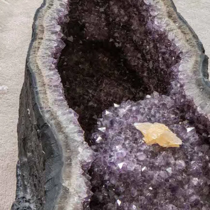 The coffee table is actually a crystal geode filled with quartz crystals. These agate tables, which had to be tracked a long time and then transported from America, were to become a key element.