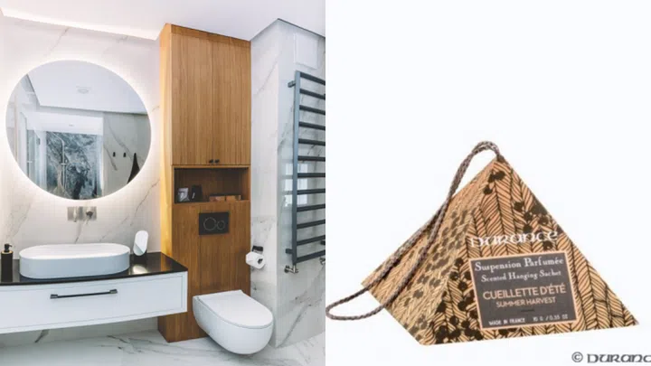 Using a fragranced sachet and hanging it somewhere in the room can get rid of any odours and will make for a fresher-smelling bathroom, especially since bathrooms can sometimes have poor ventilation.
