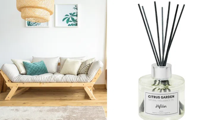 Unlike scented candles, reed diffusers will diffuse the air with fragrance with no effort on your part aside from setting it up. You can adjust the strength of the fragrance and it will circulate around the room with airflow. It's also a good choice if you want to keep your living room constantly fragranced since it will continue to work emit its scent until there is no more product.