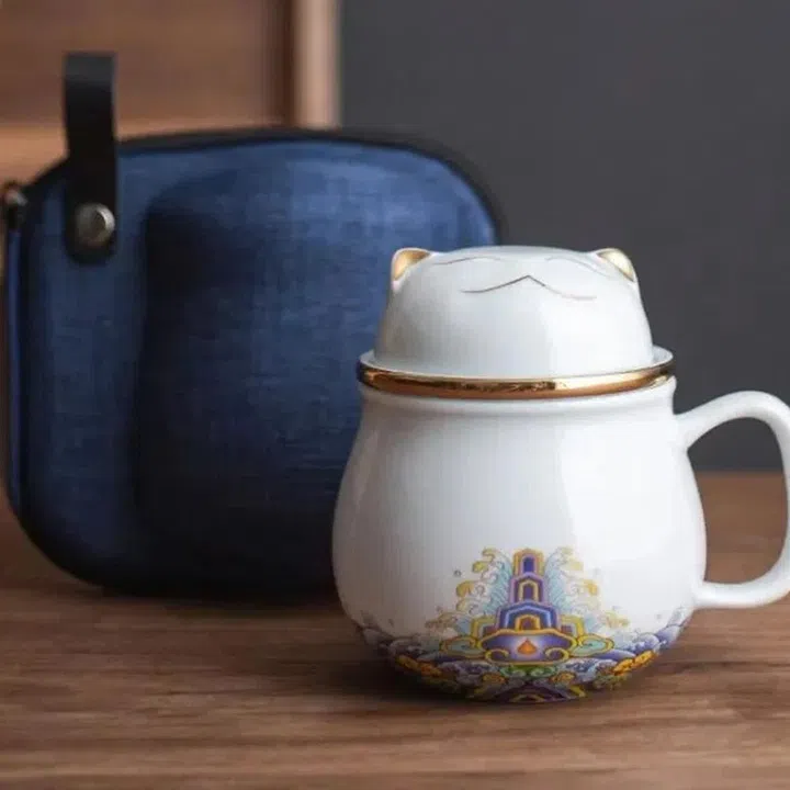 Here’s one for those who appreciate both tea and cats. An adorable mug with its own infuser, it comes in 4 colours: white, red, jade and dark blue. The lid is both a cover and a coaster for the built-in infuser. A shock-resistant bag lets you carry this smiling cat on-the-go.
