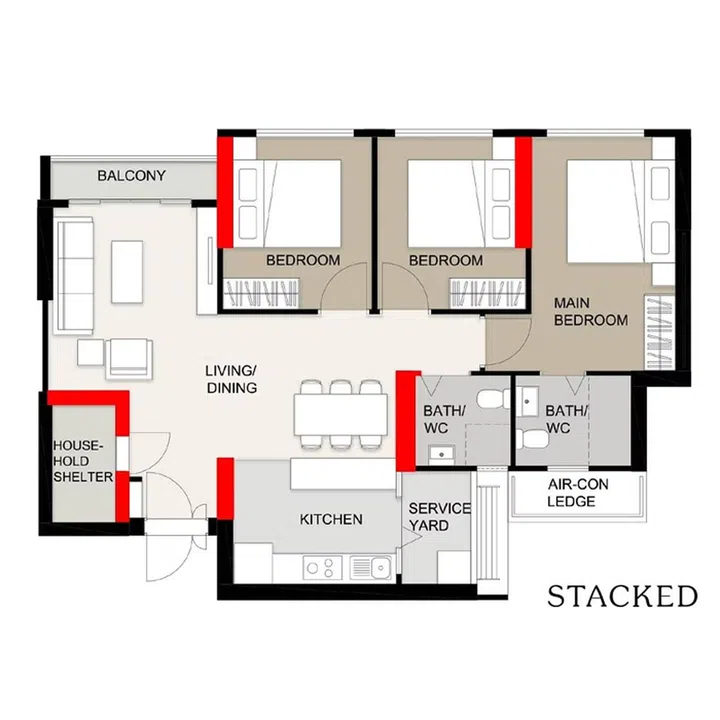 Especially with the falling birth rate trend in Singapore, families are smaller today. Some may just prefer having a bigger living area than having three proper bedrooms in the house.