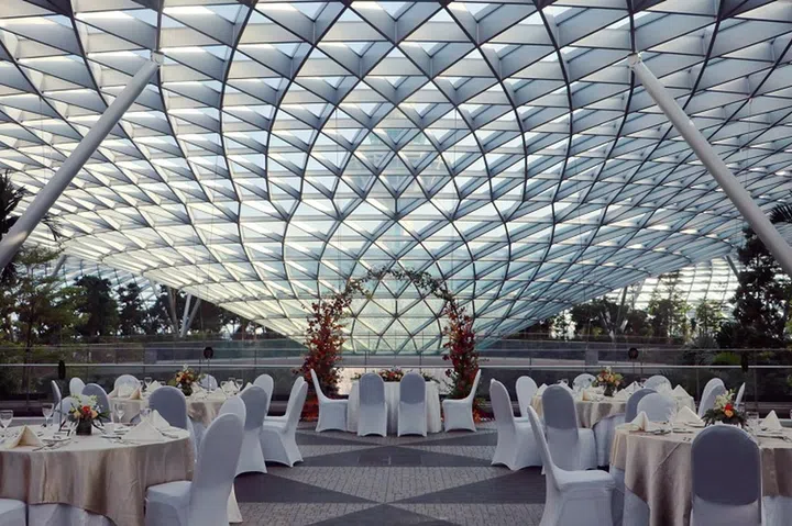 If you prefer a more intimate soiree, the Valley View Private Suite at level four of Jewel Changi Airport could be what you're after. This air-conditioned space boasts an exclusive balcony with a glorious view of the Shiseido Forest Valley and lush greenery.