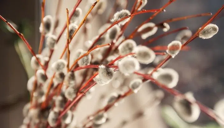 Pussy willows signify the start of spring. Also known as catkins, this plant with furry buds needs a change of water twice a week if it is in a vase. If it is potted, water twice a week. Fresh water ensures the plant lasts longer and prevents mosquitoes from breeding.