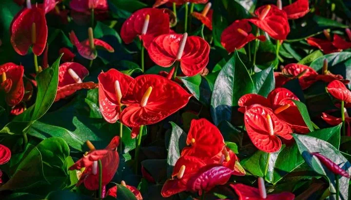 Flamingo lilies come in an auspicious red or pink colour symbolising prosperity. With blossoms shaped like little hearts, these flowers are perfect for Valentine's Day too and if you care for them properly they'll last a long time. What's more, flamingo lilies have the ability to remove formaldehyde, xylene and ammonia from the air.