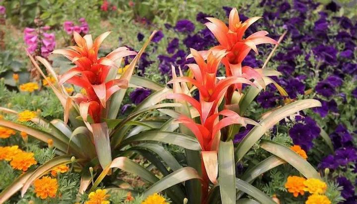 These flowering plants are also known as "pineapple flowers". Pineapple is an auspicious fruit, as it is called ong lai in Hokkien, meaning "good fortune arriving". These plants are also relatively easy to maintain.