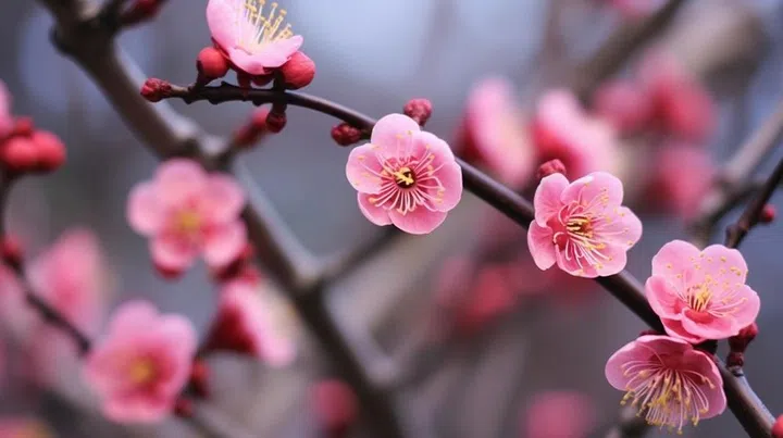 Peach blossoms or tao hua are considered sacred in China and symbolise romance, prosperity and growth. They're also popular with young people looking for love. Meanwhile, plum blossoms (pictured), called mei hua in Mandarin, are a symbol of endurance, courage, perseverance, and reliability.
