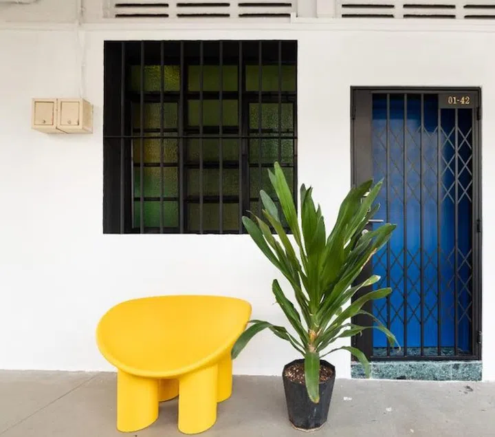 Pops of colour as seen on the outside of the apartment give a hint of what to expect on the inside.