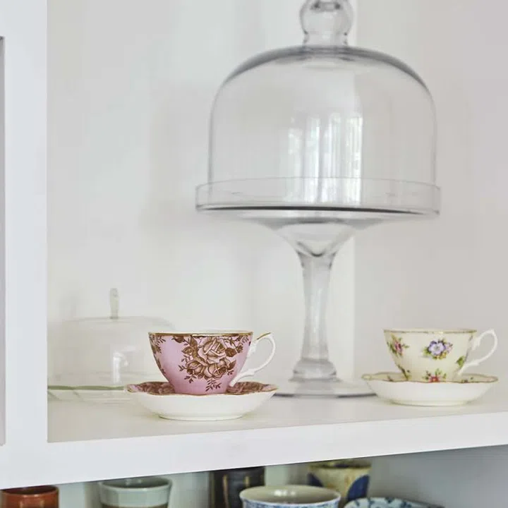 Anthony precisely determined what he wanted to put in the open shelves behind the living room and gave Dan specific dimensions, including the measurements for the cups.