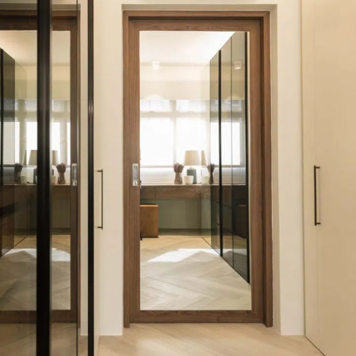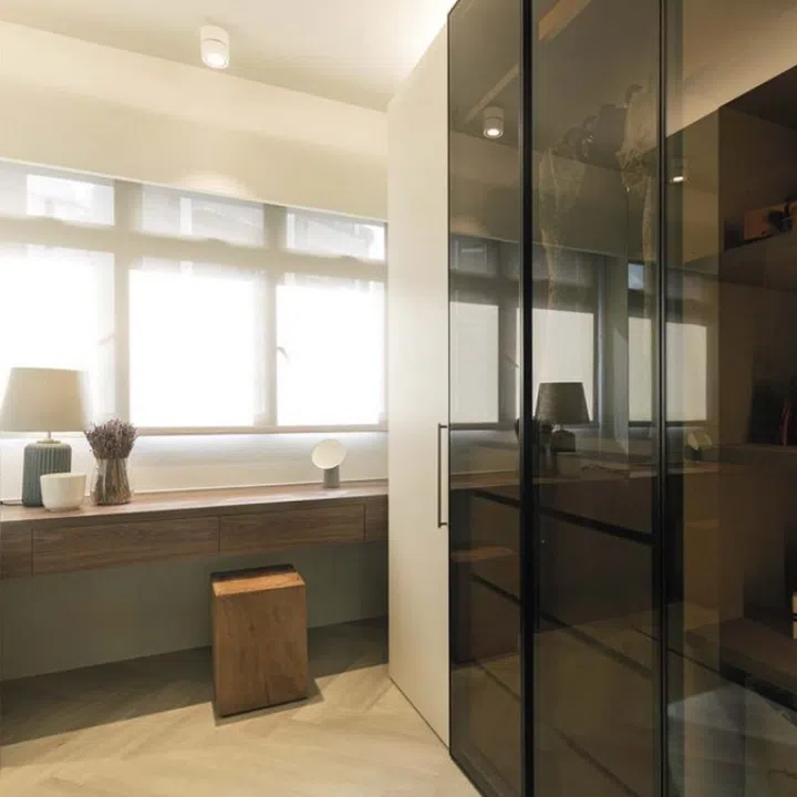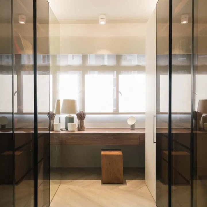 The study corner in the master suite takes on a similar formal expression as the walk-in wardrobe.