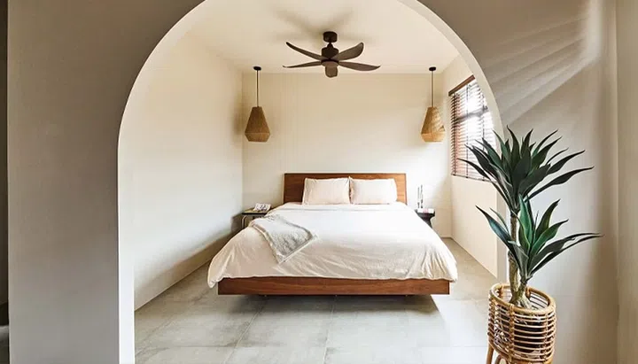 With the integration of the existing master bedroom and the bedroom next to it, JT configured the layout such that it is now a master suite with a separate sleeping area that Nigel likens to a “cave”, which is entered through an arch that the couple specifically wanted.