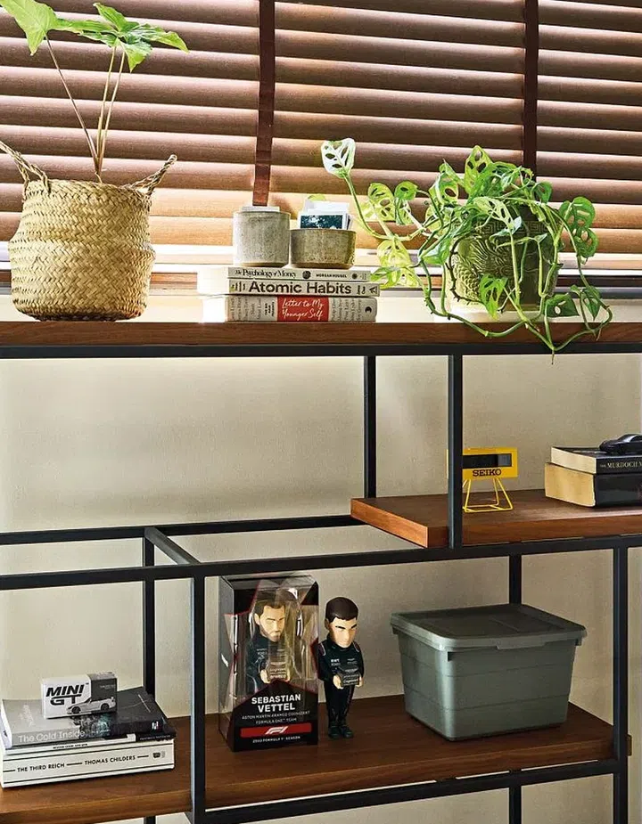 Being first-time homeowners, they are taking their time to add to the spaces. “We brought in a few plants to brighten up the colours. We also added some artworks, prints and rugs that reflect our personalities and what we like,” says the couple.
