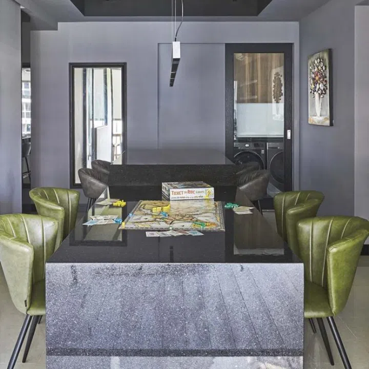 The brief was to reimagine and challenge the typical design narrative so that they would have a working, dining, and entertainment space in one for themselves and their three children. Lawrence and Ash rose to the creative challenge by removing certain conventional fixtures, such as the usual sofa and TV that are present in most homes, since the family’s lifestyle didn’t require these.