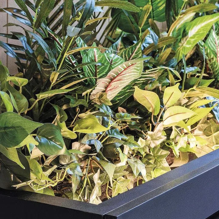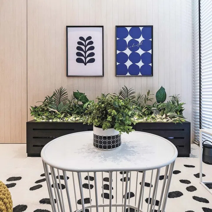Wolf Woof’s signature design strategy shows up in the custom-designed TV console in the living room that looks like a planter. Carmen is very proud of this design.