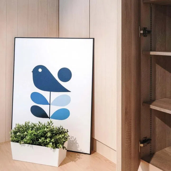 As part of the bedroom renovation, Carmen tells us Wolf Woof replaced the old wardrobe with a new one that includes side storage with smaller compartments for their accessories collection.