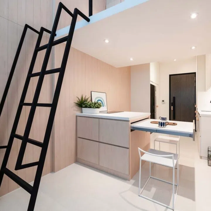 This Japandi-Style One Bedroom Condo Features A Built-In Loft
