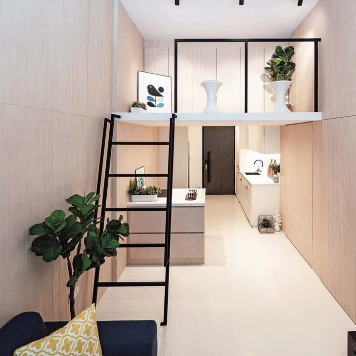 From the outside, you cannot tell that this compact one-bedroom, Japandi-style condominium unit has an additional loft. We find out how
