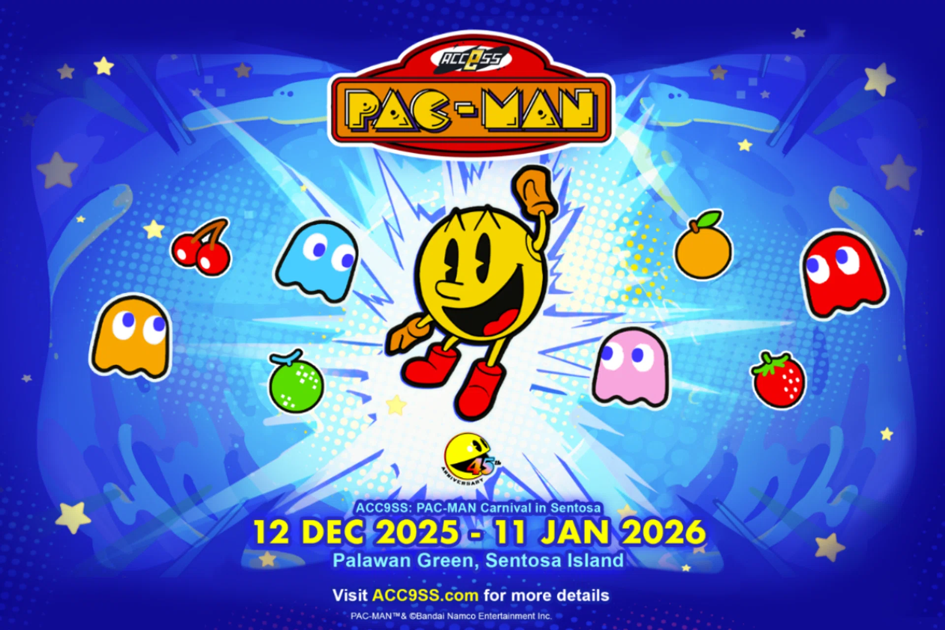 Get ready for family fun with a side of nostalgia! The iconic game character Pac-Man marks its 45th birthday this year, and to celebrate, Sentosa is rolling out the ACC9SS: Pac-Man Carnival, happening from Dec 12, 2025 to Jan 11, 2026 at Palawan Green.
