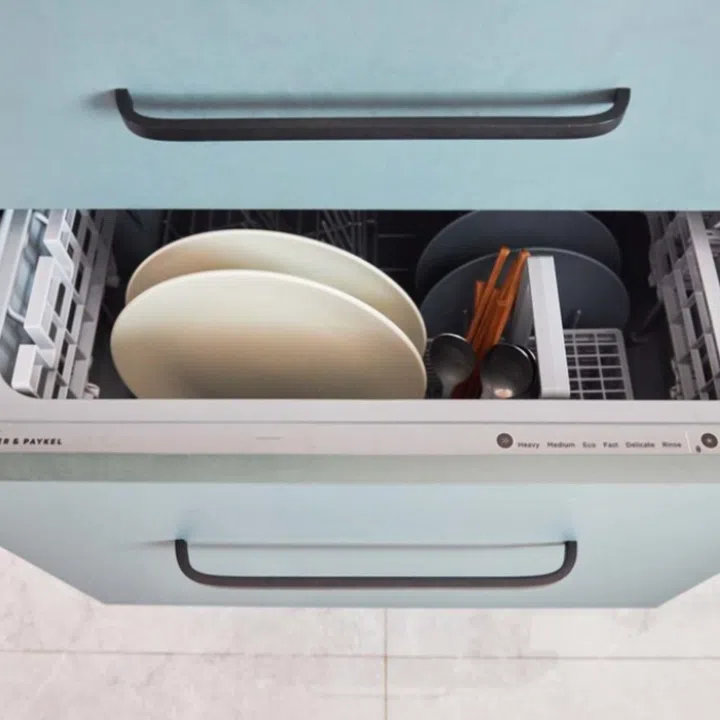 This requires some clever rewiring of the pipes. “We wanted the kitchen to be a functional part of the living space,” shares Balazs.