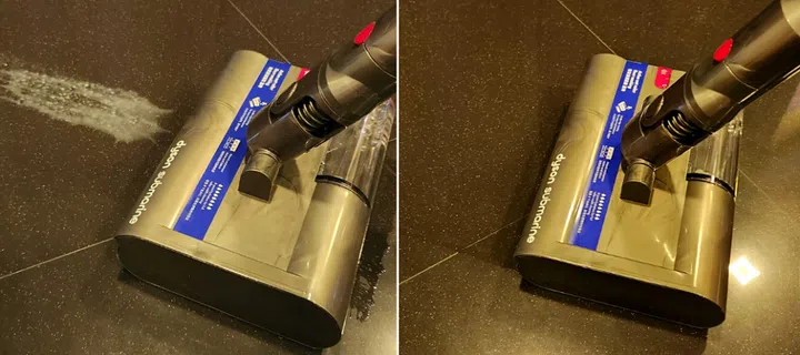 We tried it out with soya milk on the floor, and it took all but two passes with the roller head to leave the floor spotless. Where does the waste go? Water and debris are extracted from the roller into the separate 360ml waste tray (with no dirt or debris transferred back onto the floor), which sits directly behind the wet roller. This can be emptied when you're done cleaning.