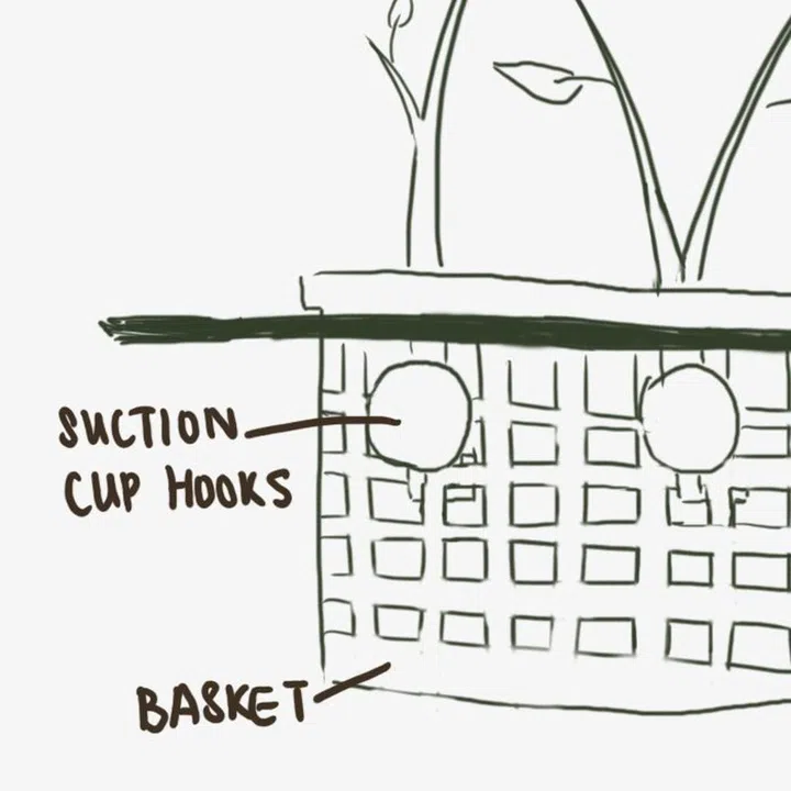 I made these self-watering contraptions by scavenging an unused basket, some extra hooks on suction cups, a random disposable cup, a scrap of cloth, a plastic bottle and a piece of styrofoam the uncle from my neighbourhood fruit stall was going to throw away.