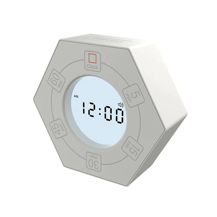 The Pomodoro Technique is a productivity hack that gets you to work for periods of 25 - 30 minutes with short breaks of 5 minutes in between. With this hexagonal timer, simply turn the clock to the interval you want, and the countdown will start. You can also use it to limit your procrastination breaks and stop the endless scrolling on your phone.