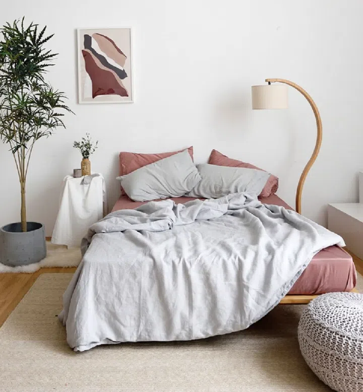 In terms of durability, French linen is a winner. Linen is a highly versatile breathable fabric that regulates temperature. French linen also has a slightly coarse hand feel that softens with each wash to become soft and cocooning. Clara shares, "It has a natural, textural feel and is a perfect addition if you are going for a cosy, rumpled look in your bedroom. Both bamboo and linen fabrics also trap less dust versus cotton, making them suited for those with sensitive skin."