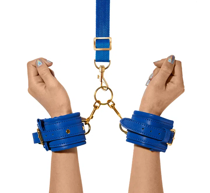 Use these sexy vegan leather cuffs on their own or add the strap for some over-the-door restraint play when it's time to heat things up in the bedroom.