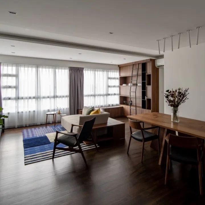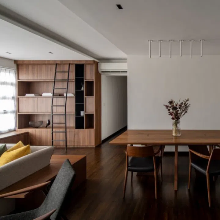 The simple pleasures in life are the focus of the design in this five-room flat in Ang Mo Kio: reading good books, cooking delicious meals, spending quality time together.