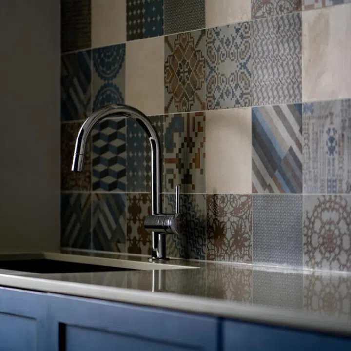 As the couple also enjoys cooking, a fully-functional kitchen was a must. It includes a domino stove, automated kitchen faucet, dishwasher, oven and wine-chiller – all well-concealed so as to maintain the minimalist interior. To add character, Arche Interior put in details like these Italian patterned tiles from Rice and Fields as a backsplash.