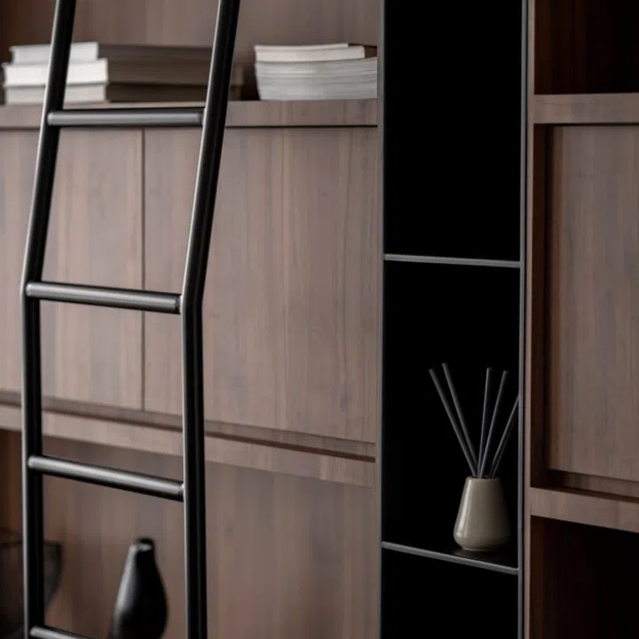 As the couple are book lovers, they needed a sizeable display space for their book collection. Arche Interior incorporated a floor-to-ceiling bookcase with a classic rolling library ladder.