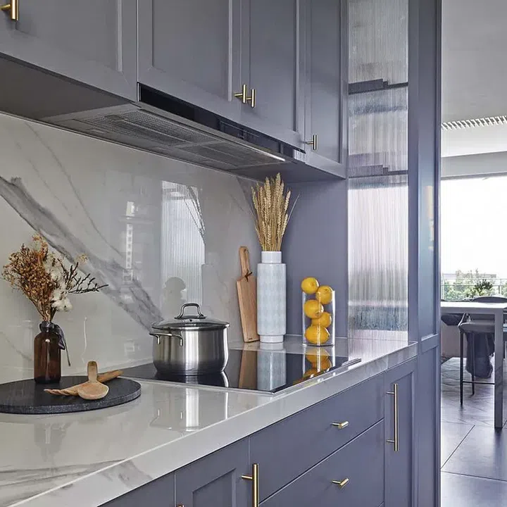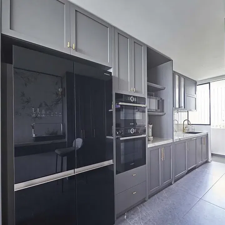 A full-height coffee counter cabinet acts as a divider between the pantry and the wet kitchen. Since moving in in March 2022, the kitchen is, without a doubt, the wife’s favourite space within the home.