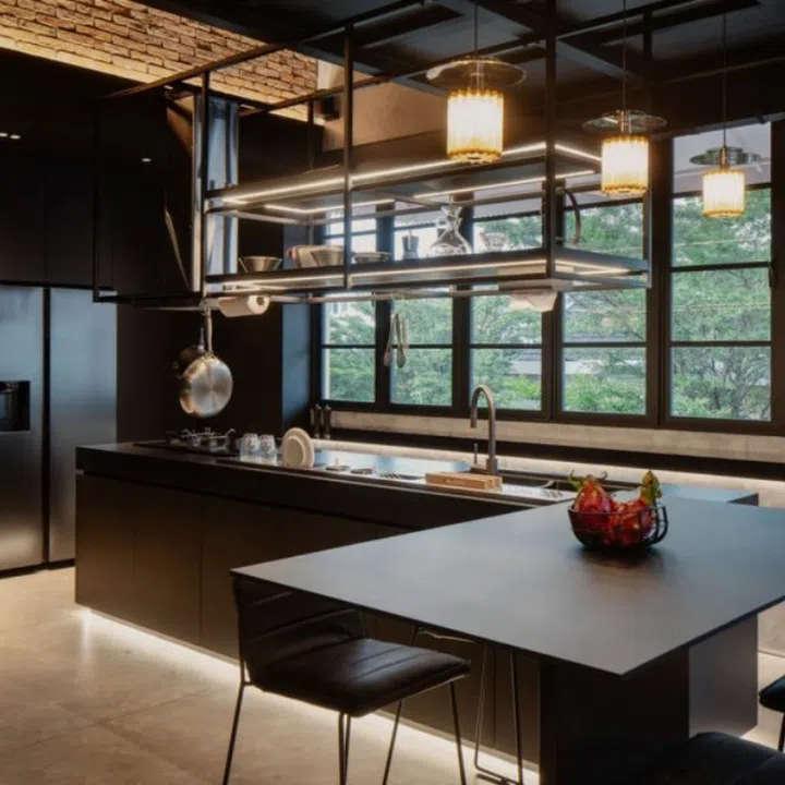 To create that New York City apartment feel, Mr Lam chose shades of grey and black for the industrial look, and also lined some walls with bricks. His choice of materials from the concrete kitchen countertop to the stainless steel sink in the common bathroom also add to the industrial aesthetic.