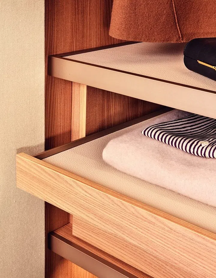 When there isn’t enough height in your wardrobe, long, sweeping dresses should be folded and placed in a drawer, too.