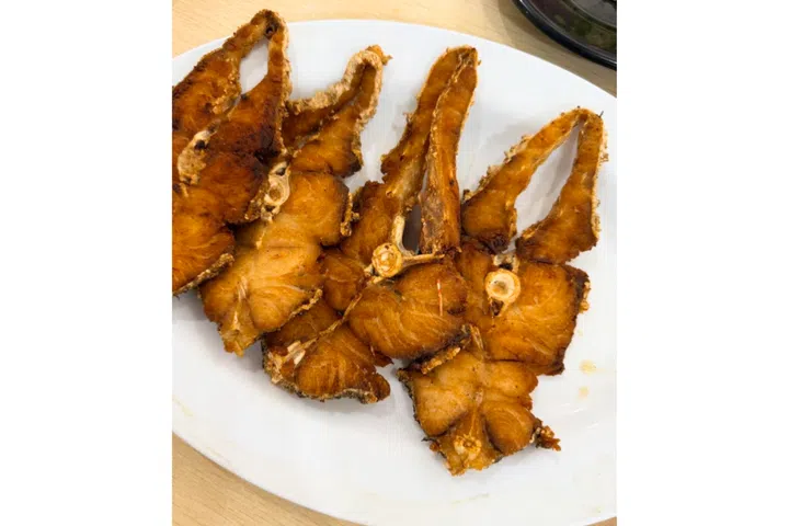 Snapper fillets at the latter are shatteringly crunchy and batang slices served in soup are fresh and bouncy. We also order six medium-sized prawns, which are meaty and tender even after being deep-fried with shells on, as well as bittergourd egg. The meal for four costs $32.