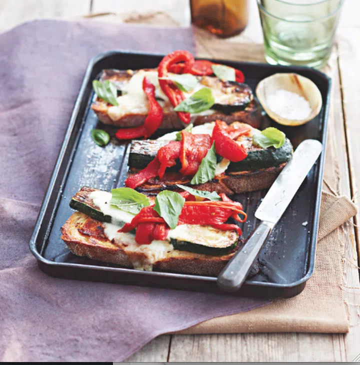 Easy, speedy and hearty, this makes a yummy snack any time of day. These grilled vegetable and mozzarella toasts make great canapés or light appetisers.